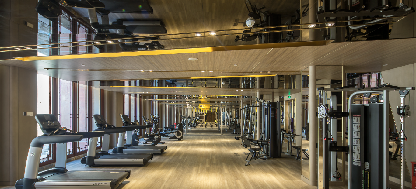 您可进入我们健身中心,使用先进的有氧训练器材,为健康充电,而瑜伽,太极拳,诊疗室和私人包间为您带来独特的养生健身体验。